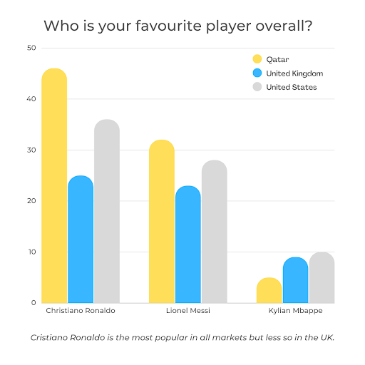 Ronaldo is more popular than Messi it seems and especially popular with his Qatari hosts. He’s less popular in the UK, no doubt due to his time with polarising club Manchester United where for every adoring Reds fan, he probably has at least one detractor.